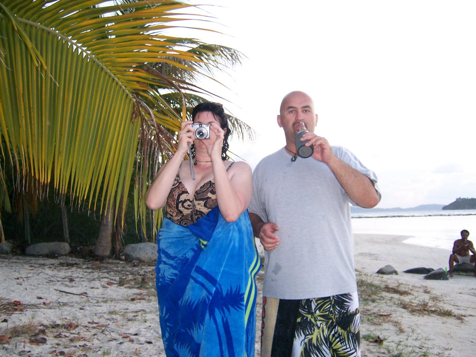 After clearing 'HM Customs' behind all the locals who had been shopping in St Thomas, we met a 'Singlet wearing, moustached, tanned, local guy' by the name of David Ross Bailey & his lovely daughter Samantha. DB then proceeded to take us on a short tour around the Island & the local hotspots, one of those was the beautiful beach called 'Smugglers Bay' which was to become our nemisis later in the trip. We also went to the World famous 'Bomba's Shack' and had a local brew called 'Carib' & Sharon had a 'Bomba's Rum punch' which does not really describe the potency of the drink. I liken it too a small Nuclear explosion rather than a punch.